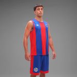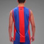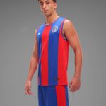 Siguiendo la línea de fútbol, se caracteriza por sus franjas anchas en colores azul brillante y rojo intenso.