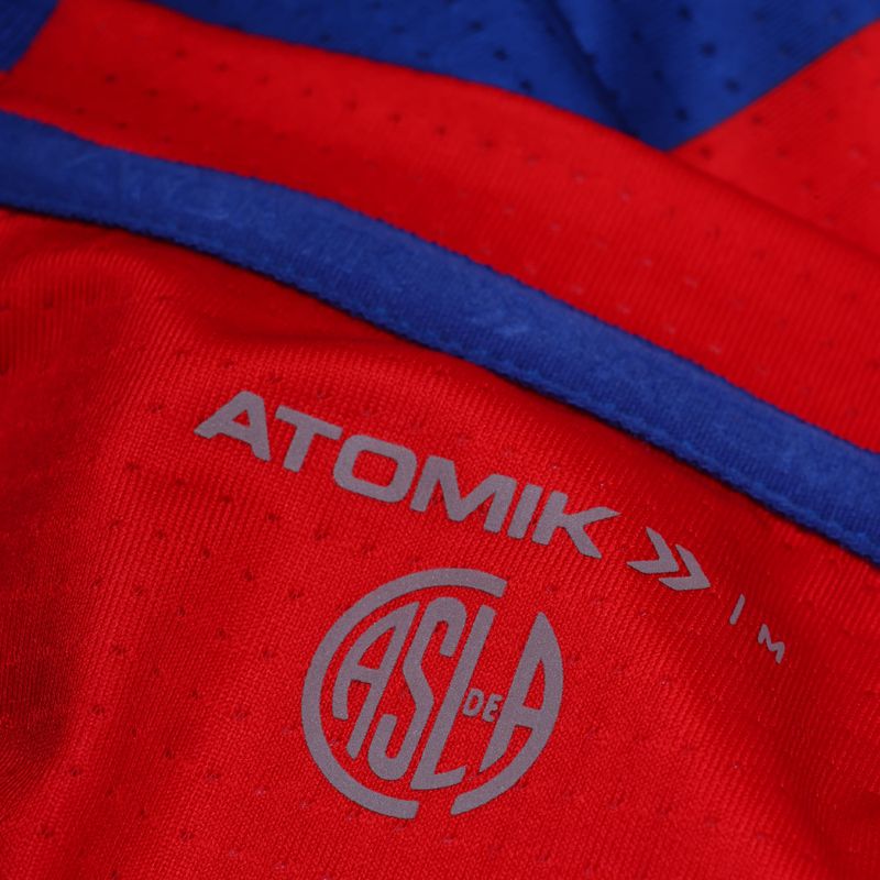 Cuenta a su vez con un cuello de escote redondo en ribb rayado, y posee detalles de calidad en sus grifas de rubber con altura, su logo atomik con efecto bordado y su espectacular escudo emblema en el pecho, para lucirlo con orgullo en cada partido.