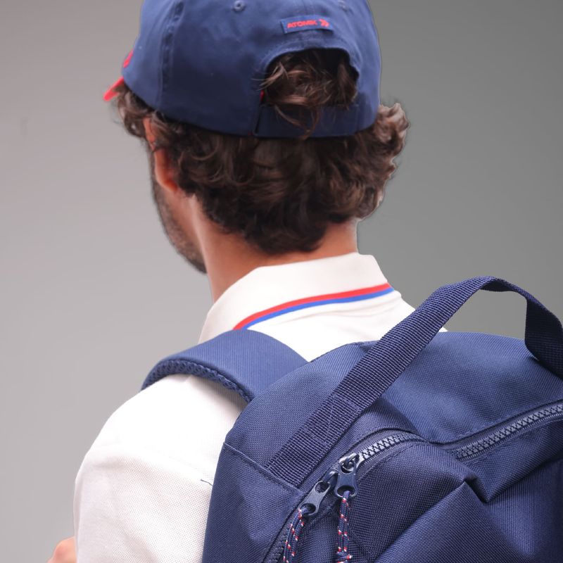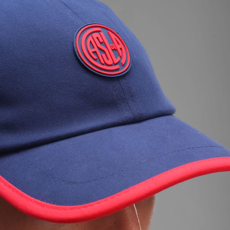 Posee visera curva envivada, y tira trasera de ajuste con velcro, uniones internas envivadas con frase alusiva; parche de emblema casla en goma con altura en delantero y grifa tejida con logo atomik en espalda.
