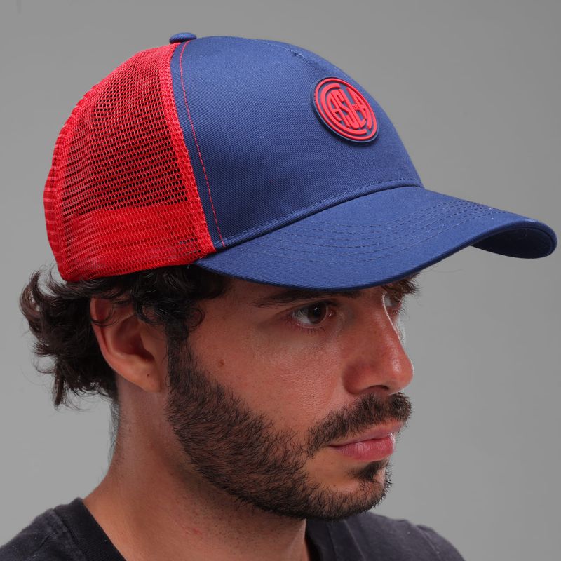 Posee visera precurvada, tira trasera de ajuste, uniones internas envivadas con frase alusiva; parche de emblema casla en goma con altura en delantero y grifa tejida con logo atomik en espalda.