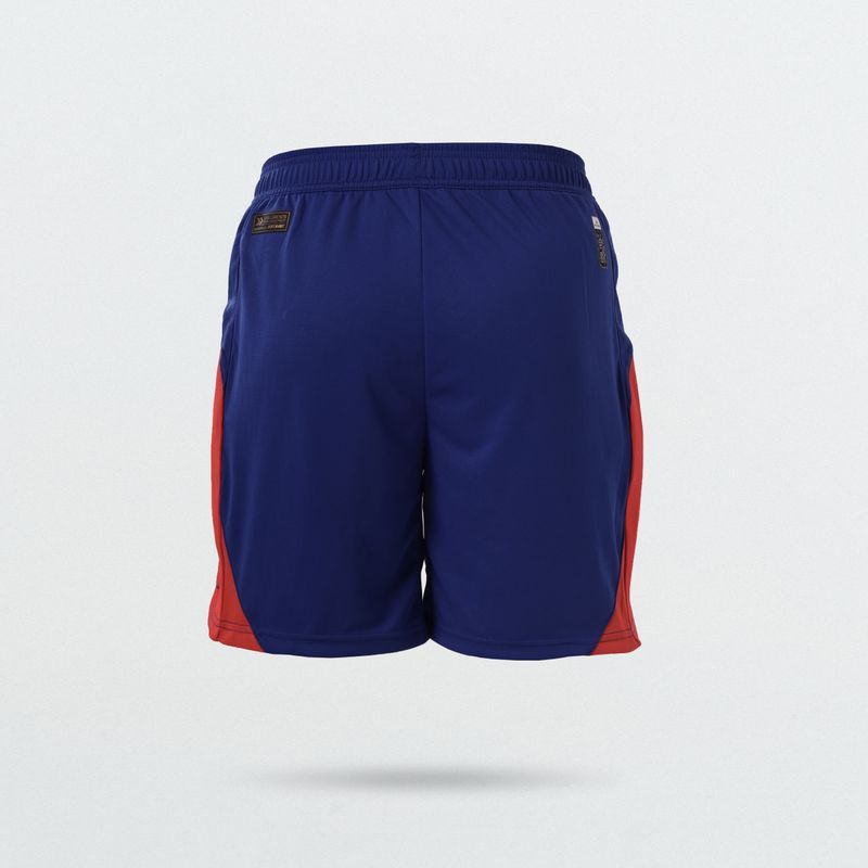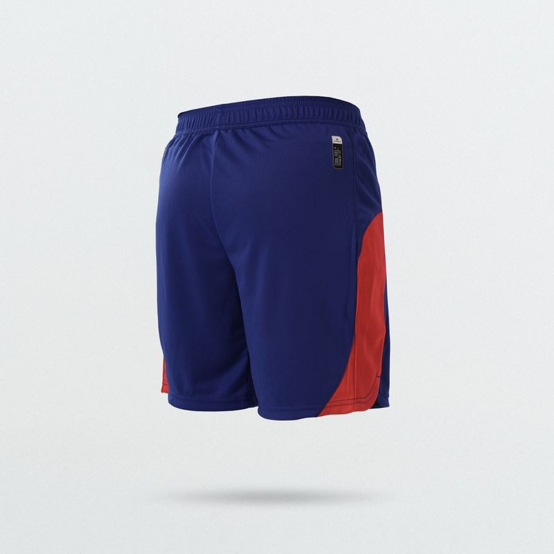 Calce clásico, tiro medio con detalles en azul vibrantes y rojo intenso. Largo de entrepierna: 7,5 pulgadas. Confeccionado en un tejido texturado y ligero que favorece la comodidad en cada movimiento.