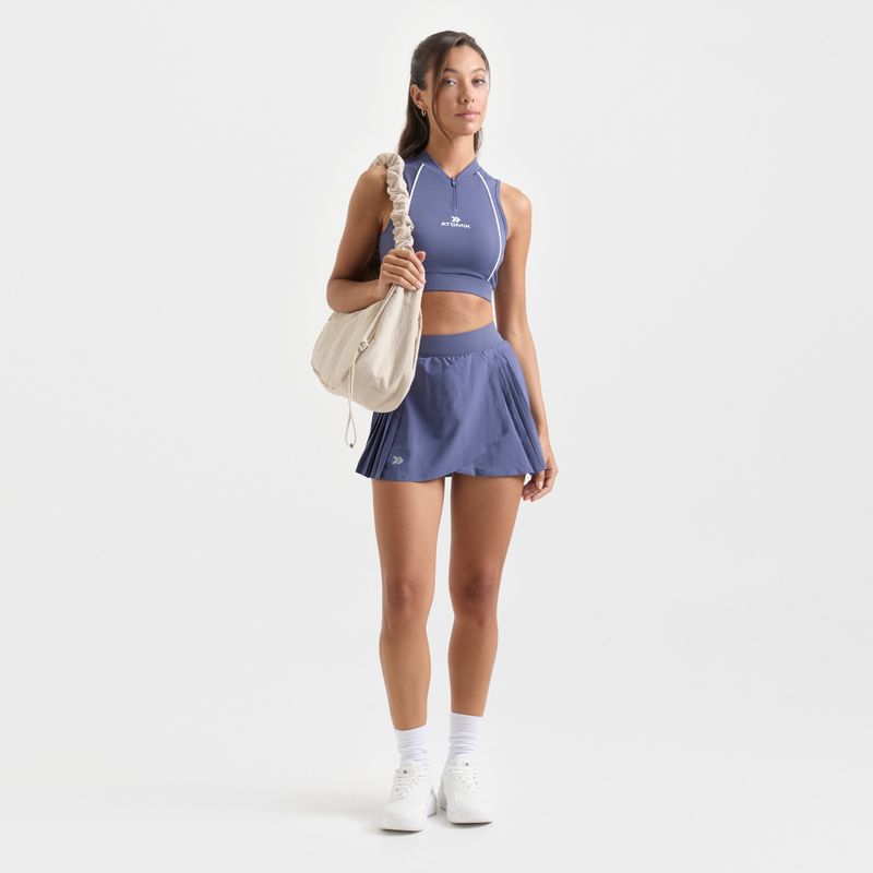Falda corta al cuerpo, confeccionada en textilde punto suave y adaptable, de densidad media–alta para brindar mayor sujeción y confort.