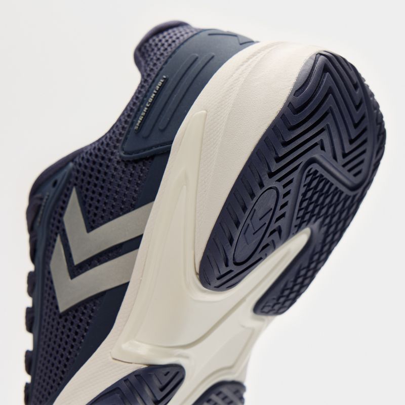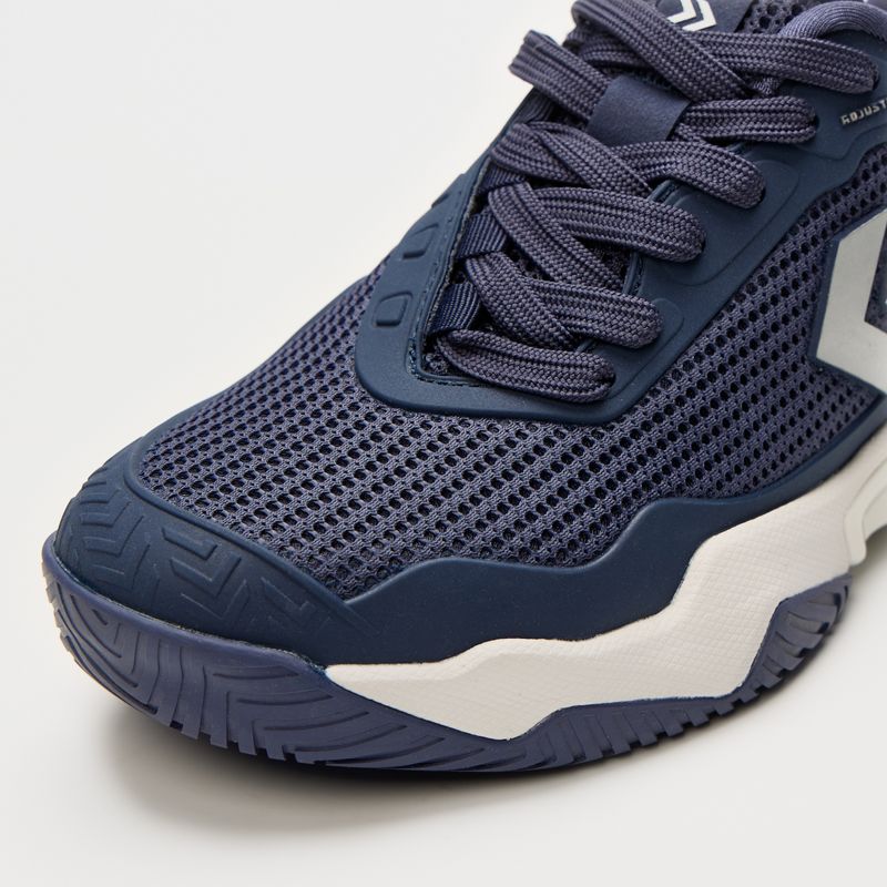 La suela rubber con dibujo optimizado garantiza agarre firme y controlado sobre canchas de polvo de ladrillo.