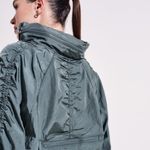 Cuenta con cierre frontal y diseño de frunces en las mangas, que suman detalle y carácter a la prenda. Incorpora capucha desmontable que se guarda dentro del cuello, brindando versatilidad según la necesidad de uso.